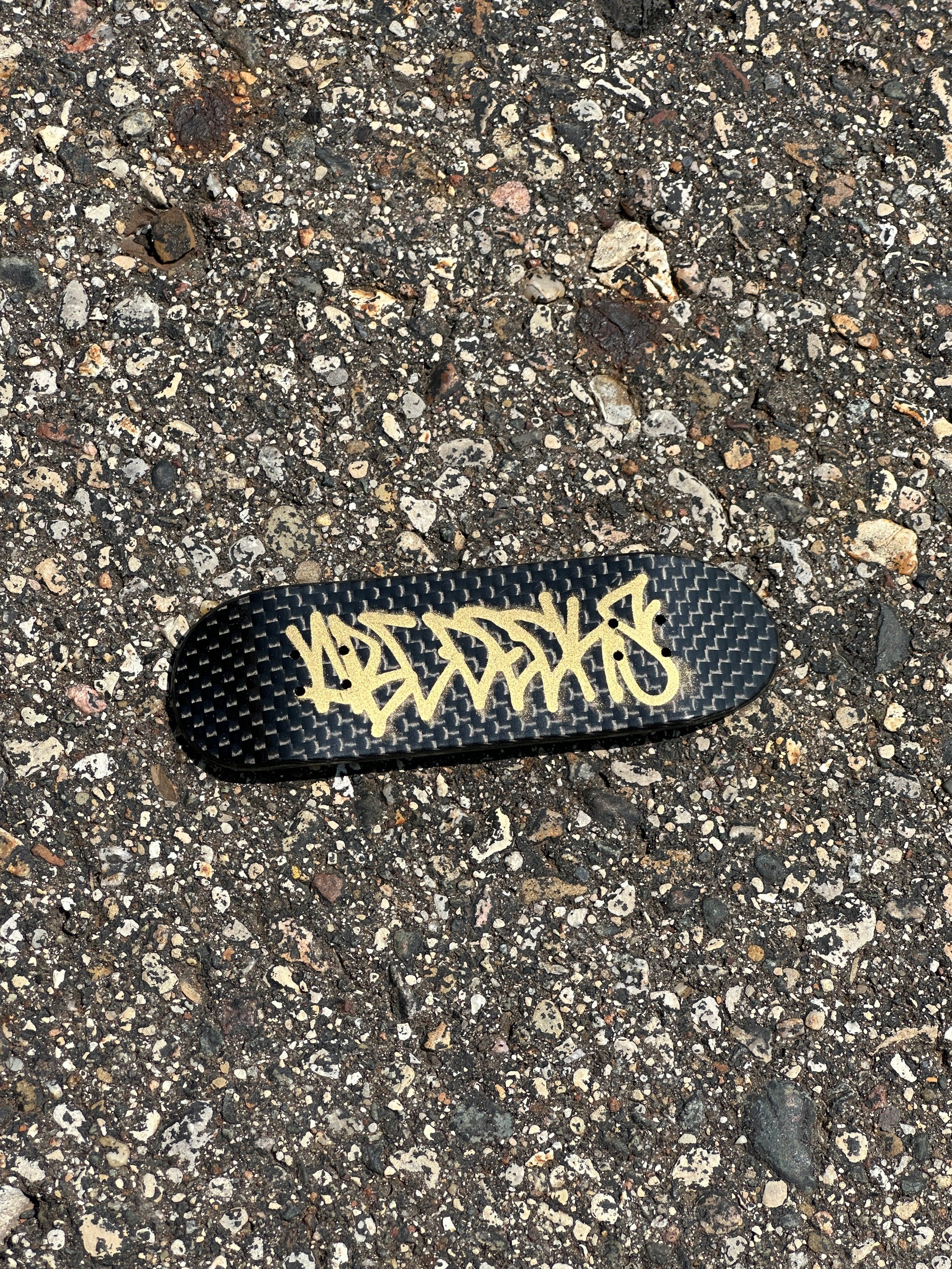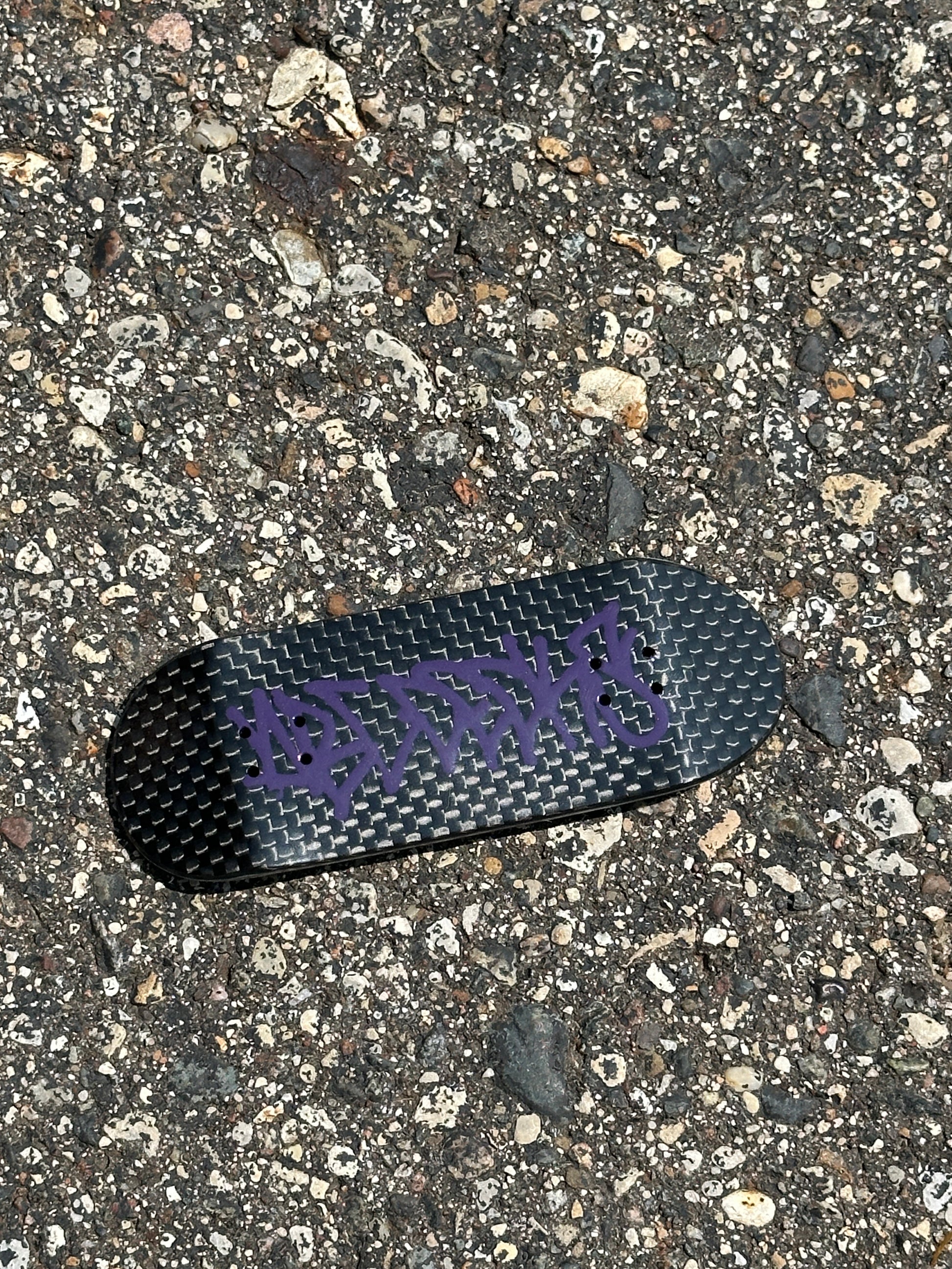 Sleek, strong, and lightweight—this board is all about performance. Using real Carbon Fiber sheets, “Carbon Fiber” brings a premium feel with a sharp, industrial edge. Built to look good and ride even better. 0.5mm Carbon Fiber bottom ply totaling 5 plies, with four random dyed plies matching the hand painted graphic on the board.